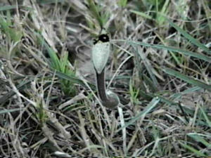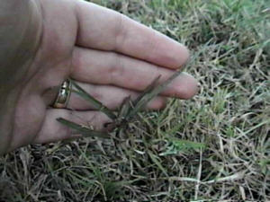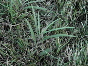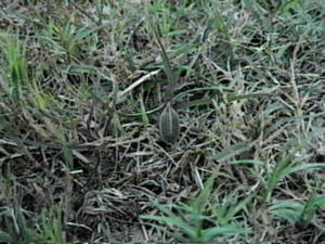 It dies back in the winter I noticed, but returns after a good rain in the spring. The soil there is very inorganic, semi-rocky, with some footc traffic. It doesn't get watered often, so the grass relies on rainfall. These blooms appeared September 1997 last, and the seed pods followed closely thereafter. We had a bad drought in 1998, I only saw it once blooming. In 1999, I can't find any plants in the area, but I do have some growing in pots around the house. No blooms there yet either.